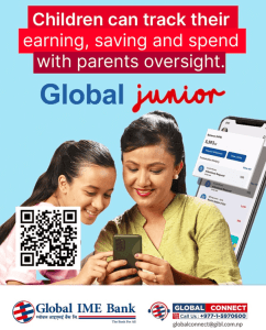 काठमाडौं । ग्लोबल आइएमई बैंक लिमिटेडले १२ देखि १७ वर्ष उमेर समूहका बालबालिकाहरुलाई लक्षित गरी ग्लोबल जुनियर एप सार्वजनिक गरेको छ । बैंकले बालबालिकाहरुमा सानै उमेरदेखि असल वित्तीय बानीको विकास गर्न यो एप सार्वजनिक गरेको हो ।