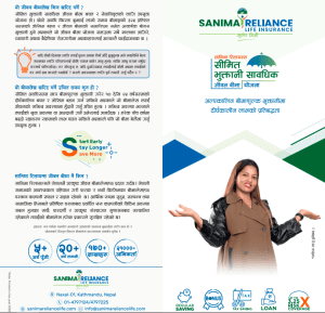 सानिमा रिलायन्स लाइफ इन्स्योरेन्सले हाल संचाल गरि रहेको एक जीवन बीमा योजना सीमित भुक्तानी सावधिक जीवन बीमा योजनामा ग्राहकले असीमित लाभ पाउन सक्ने बताइएको छ । कम्पनीका अनुसार उक्त प्रोडक्ट खरिद गर्दा ग्राहकहरुले बचत गर्न तथा भविष्यका आपतकालीन अवस्थाका लागि समेत सुविधा पाउन सक्छन्।