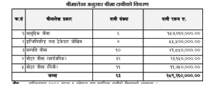 साथै, यस पटक ९ कम्पनीमा ६३ वटा दाबी परेको बेलामा साउन १ गतेसम्म सामुद्रिक बीमा, इन्जिनियरिङ तथा ठेकेदार जोखिम, सम्पत्ति बीमा, मोटर बीमा तर्फ सार्वजनिक र निजी तर्फ उक्त दाबी गरेको अवस्था छ ।