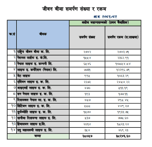 पहिलो तीनमहिनामा जीवनबीमा कम्पनीले आर्जन गरे ४१ अर्ब रुपैयाँ जम्मा तीनअर्बको सरेण्डर