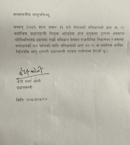 प्रधानमन्त्री ओलीद्धारा राजीनामा