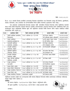 नेपाल आयल निगमले जारी गर्यो सूचना, बिदाका दिनमा चल्छन् यी पेट्रोल पम्प बीमा दर्पण अशोज १२, २०८२ काठमाडौं । नेपाल आयल निगमले एक सूचना जारी गरेको छ । सोही सूचनालाई आधार बनाउँदा बिदाका दिनमा समेत केही डीपोहरु खुल्ने जनाइएको हो ।यस्तो छ सूचना :Author बीमा दर्पण View all posts