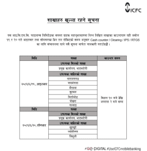 आईसीएफसी फाइनान्सका यी शाखाहरु खुल्ला रहने बीमा दर्पण अशोज १९, २०८२ काठमाडौं । आईसीएफसी फाइन्नासले आफ्ना केही शाखा कार्यालयहरु बिदाको दिनमा समेत खुल्ने जनाएको छ । फाइनान्सले एक सूचनामार्फत सो जानकारी दिएको हो । Author बीमा दर्पण View all posts