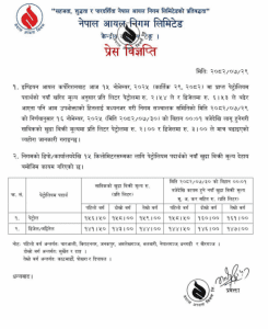 काठमाडौँ । नेपाल आयल निगमले पेट्रोलियम पदार्थको मुल्य बढेको सूचना जारी गरेको छ ।