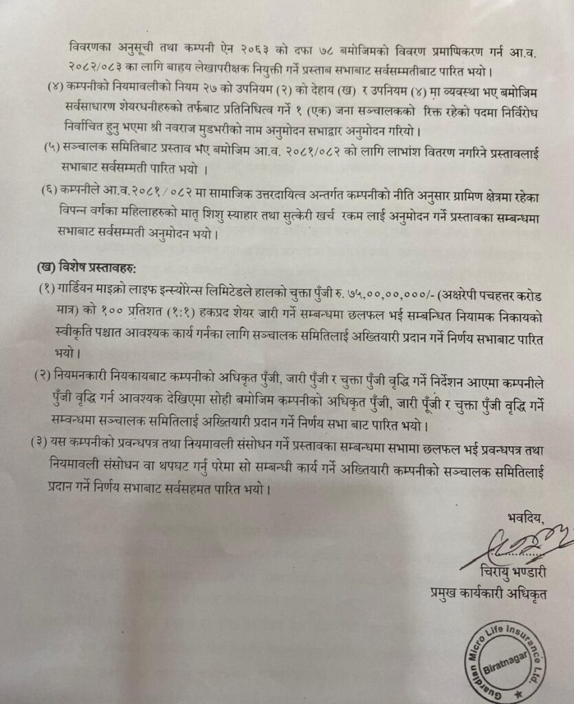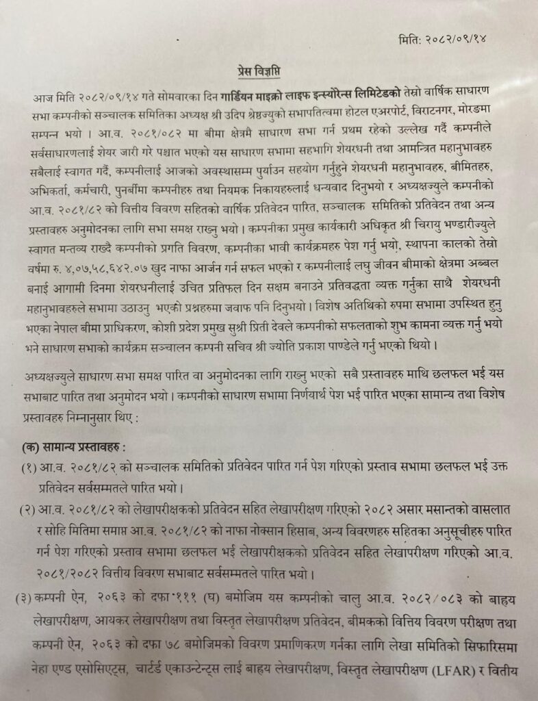 गार्डियन माइक्रो लाइफ इन्स्योरेन्सको साधारणसभा सम्पन्न